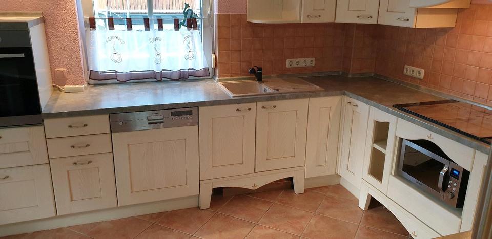 Masivní kuchyně (drobné vady), 320 x 185 cm. ¨Spotřebiče: trouba + varná deska, digestoř, plně integrovaná myčka.