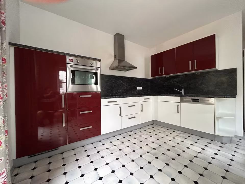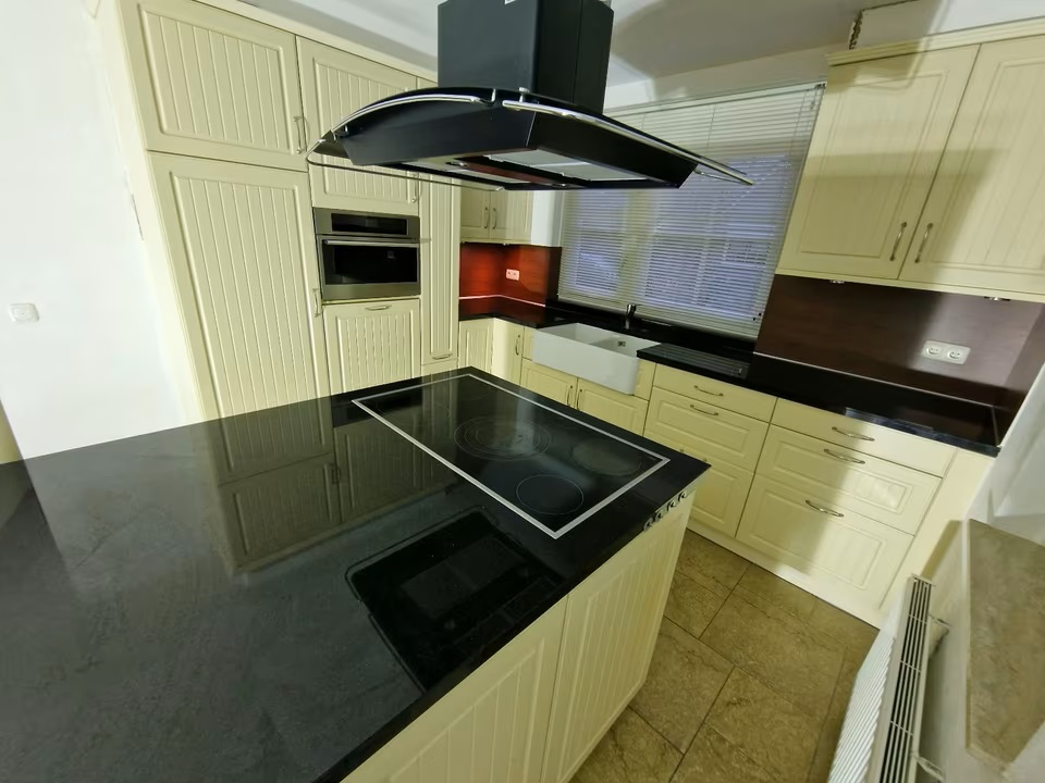 Moderní kuchyně, spotřebiče: vestavěná trouba Miele, vestavěná mikrovlnná trouba Siemens, indukční varná deska, digestoř, plně integrovaná myčka. Kamenná pracovní deska. Kuchyně k dispozici v polovině února 2026.