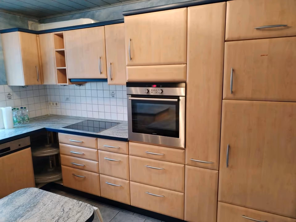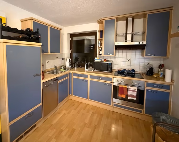 Klasická kuchyně, nekonečný úložný prostor díky velkému počtu šuplíků a praktickému sloupci s výsuvy. Spotřebiče: vestavěná trouba, vestavěná mikrovlnná trouba, indukční varná deska, myčka š 45 cm, vestavěná lednice.