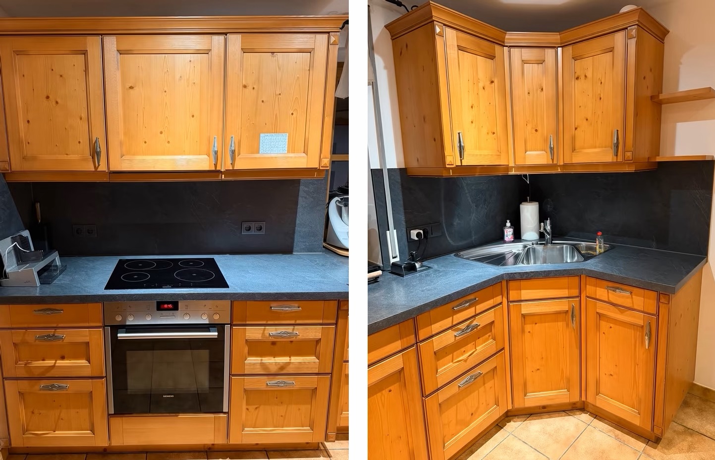Klasická kuchyně z masivu, bez zobrazených spotřebičů, v ceně dodáme tyto spotřebiče z našeho skladu: troubu + varnou desku, myčku.