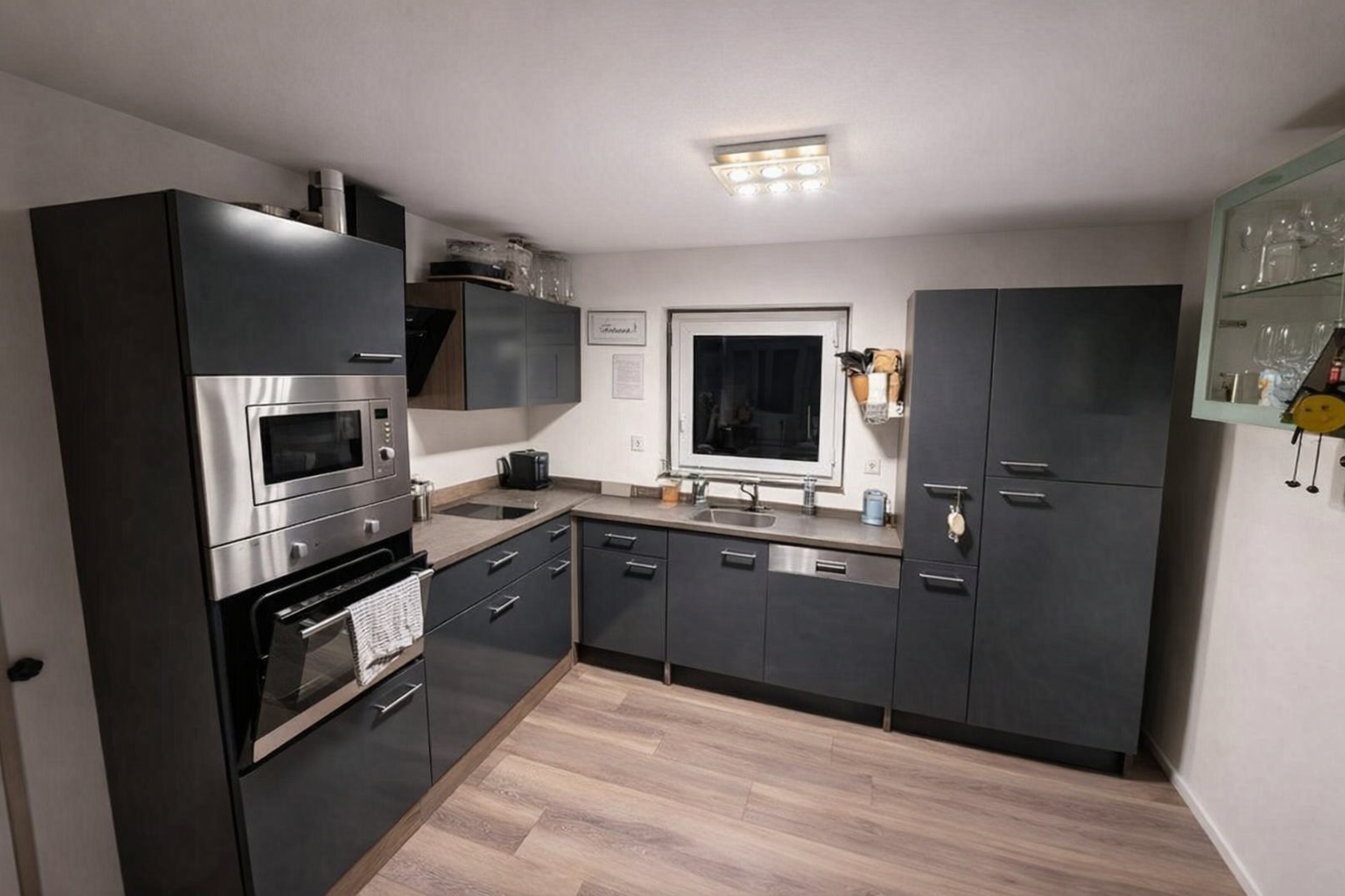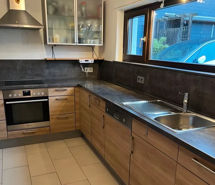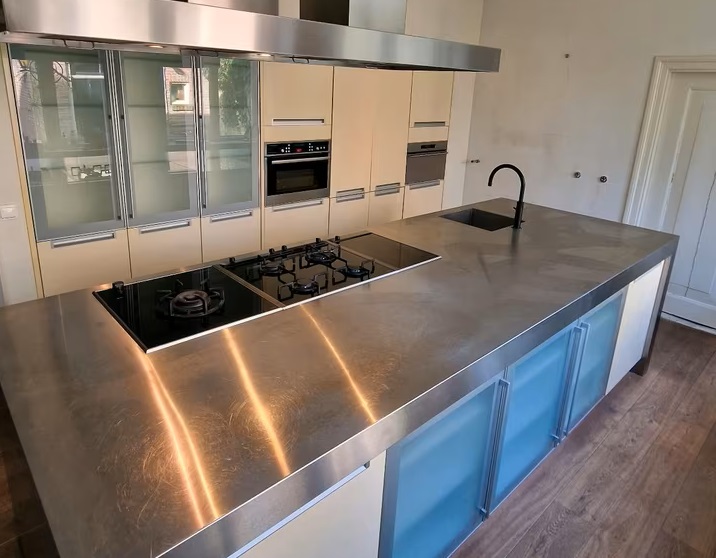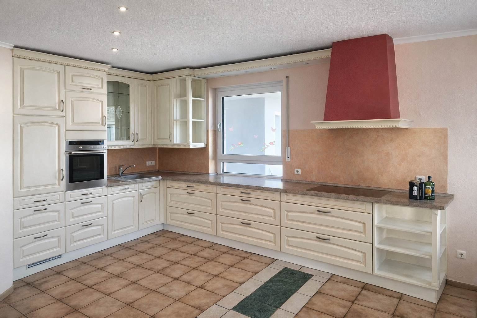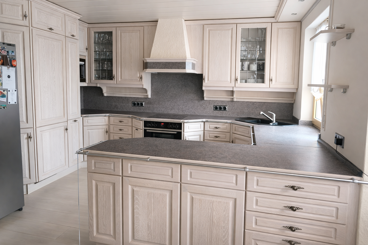 Luxusní XXL kuchyně SieMatic, spotřebiče: vestavěná kompaktní kombi trouba s mikrovlnnou, vestavěná parní trouba, elektrická varná deska, plynová varná deska, WOK hořák, stropní digestoř, plně integrovaná myčka, XXL vestavěná americká lednice. Nerezová pracovní deska.
