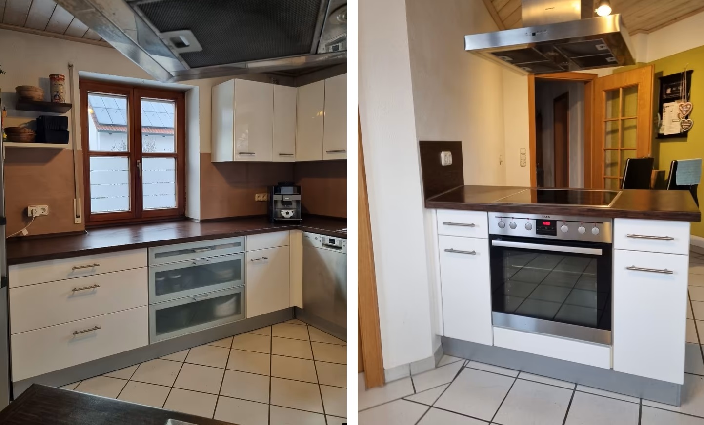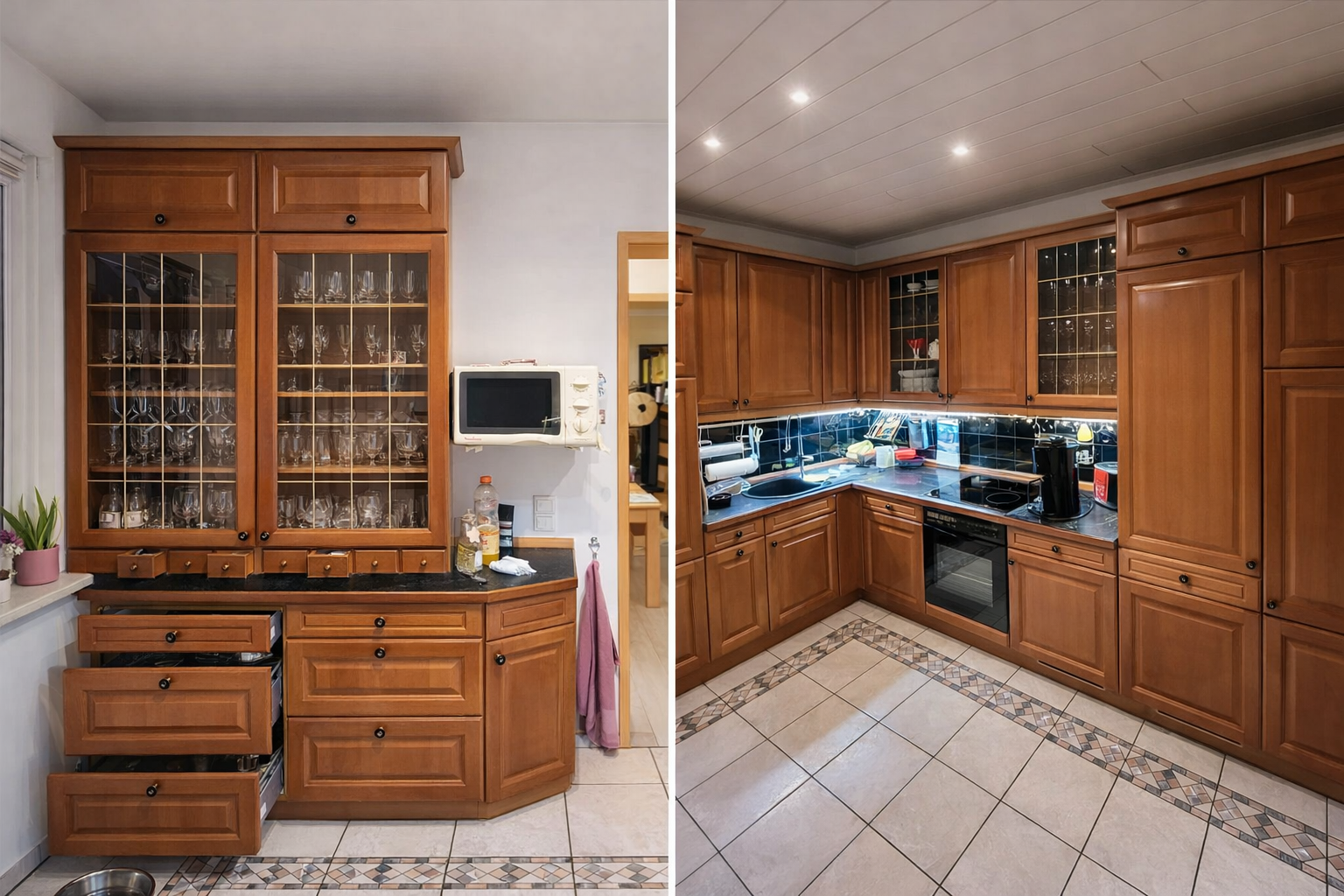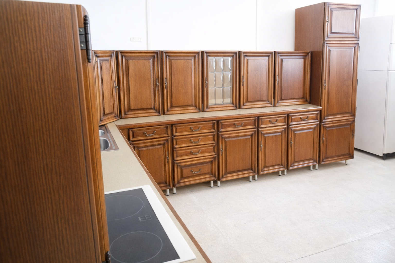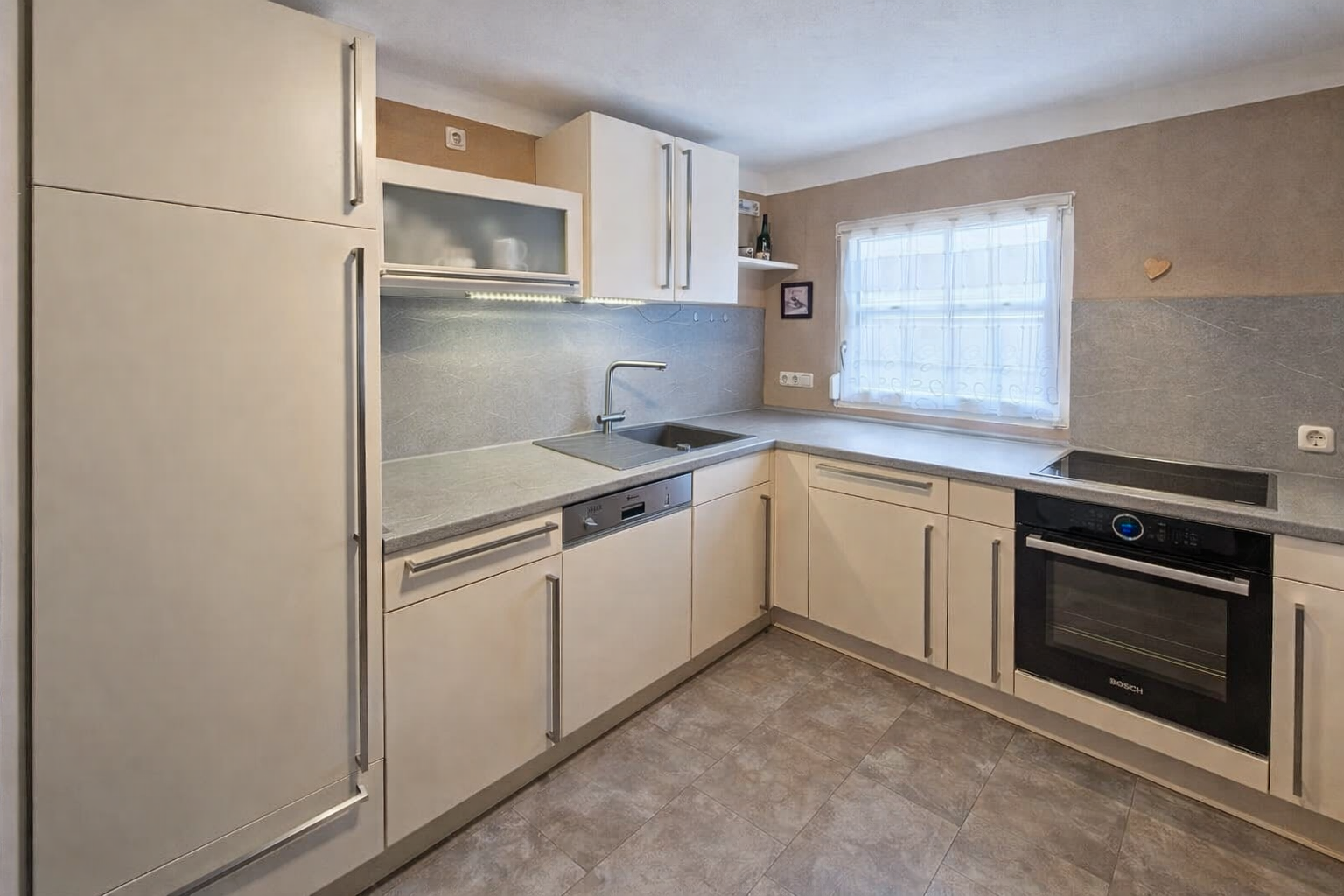 Luxusní XXL kuchyně SieMatic, spotřebiče: vestavěná kompaktní kombi trouba s mikrovlnnou, vestavěná parní trouba, elektrická varná deska, plynová varná deska, WOK hořák, stropní digestoř, plně integrovaná myčka, XXL vestavěná americká lednice. Nerezová pracovní deska.