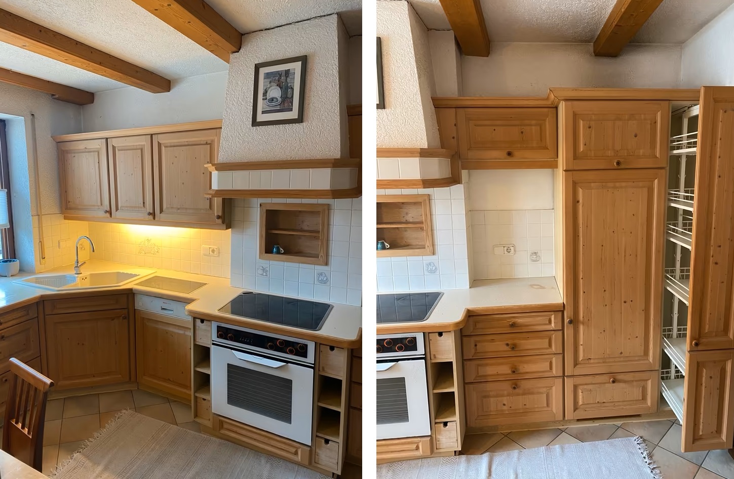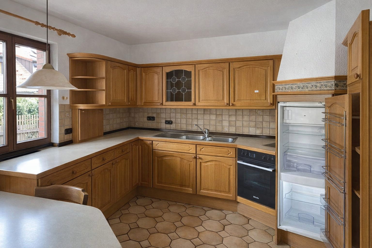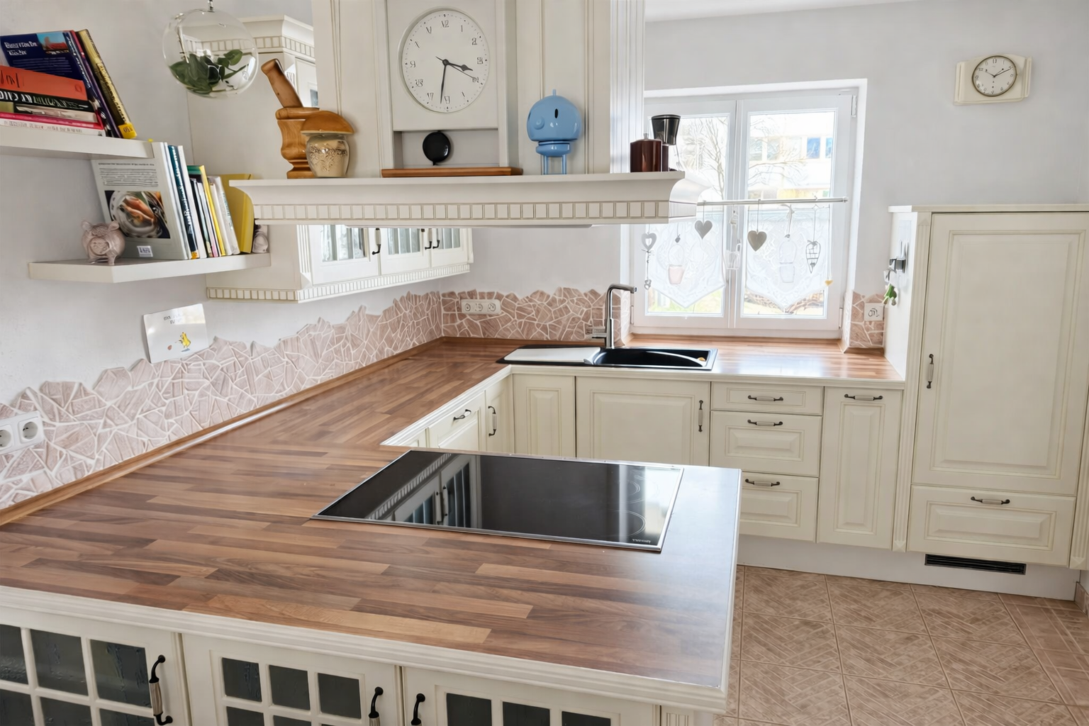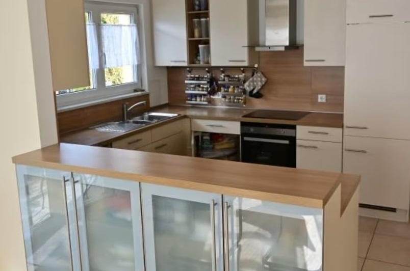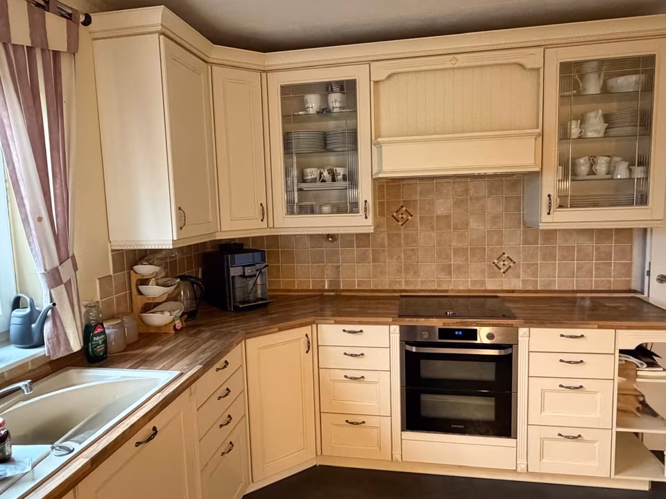 Luxusní XXL kuchyně SieMatic, spotřebiče: vestavěná kompaktní kombi trouba s mikrovlnnou, vestavěná parní trouba, elektrická varná deska, plynová varná deska, WOK hořák, stropní digestoř, plně integrovaná myčka, XXL vestavěná americká lednice. Nerezová pracovní deska.