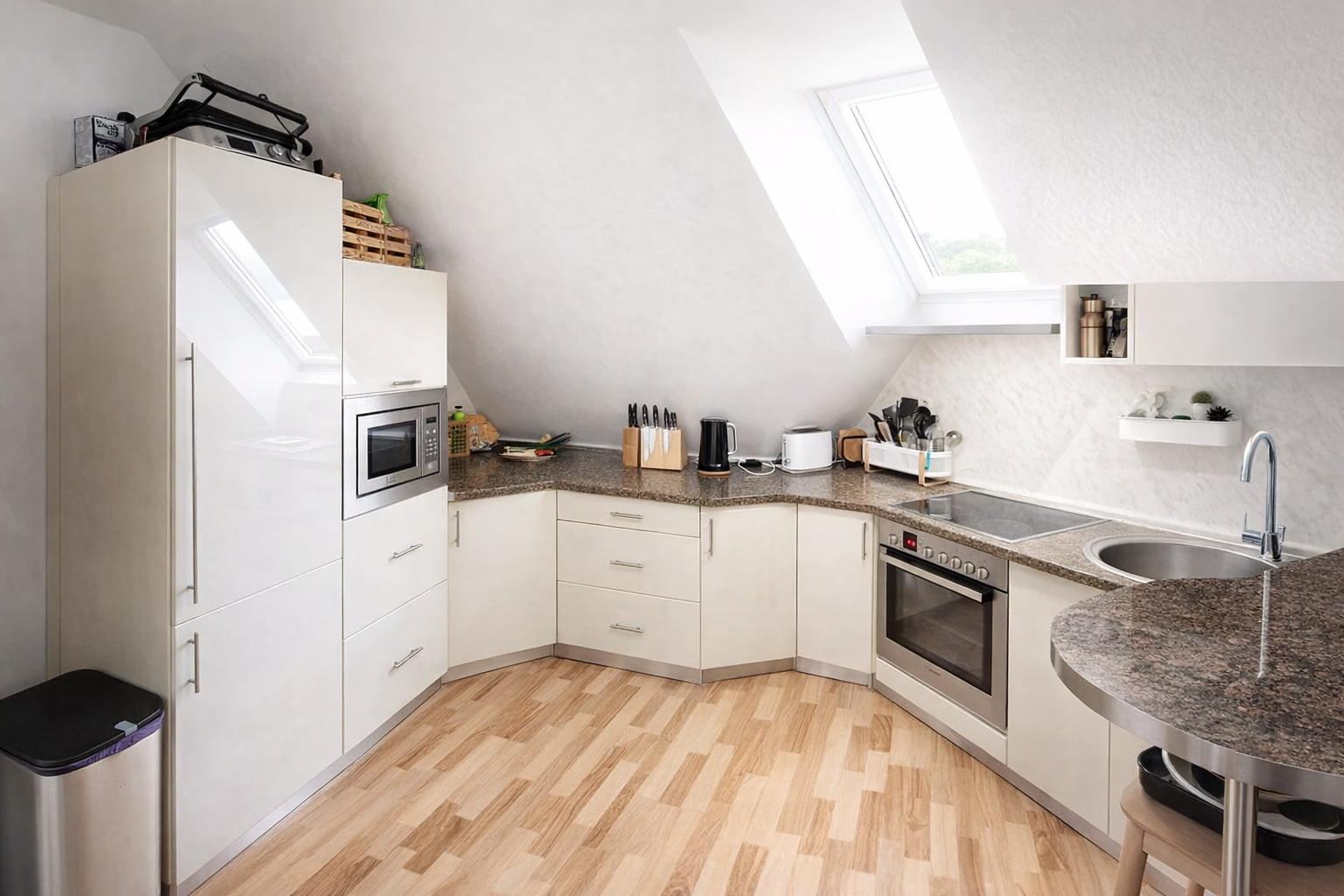 Luxusní XXL kuchyně SieMatic, spotřebiče: vestavěná kompaktní kombi trouba s mikrovlnnou, vestavěná parní trouba, elektrická varná deska, plynová varná deska, WOK hořák, stropní digestoř, plně integrovaná myčka, XXL vestavěná americká lednice. Nerezová pracovní deska.